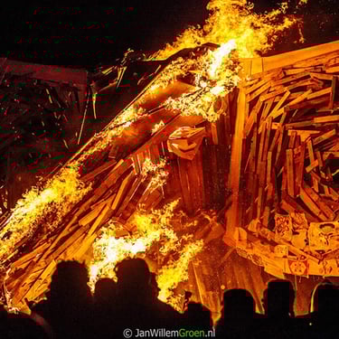 Together with designer Ernesto Bos and a puppet-making collective, we designed and built a monumental elephant sculpture from more than 90% reclaimed materials. Not as decoration, but as a ritual object. As a focal point for a shared moment of farewell. The elephant was built to be burned and that was precisely where its power lay.